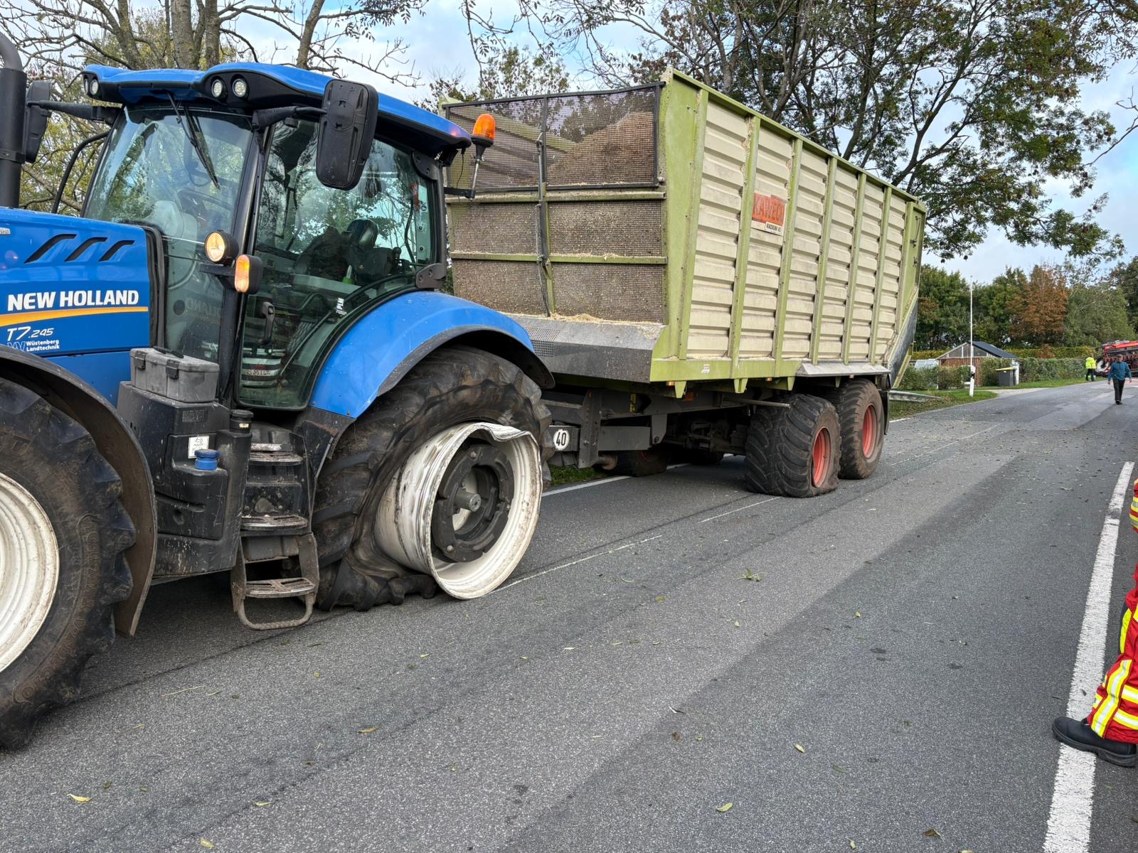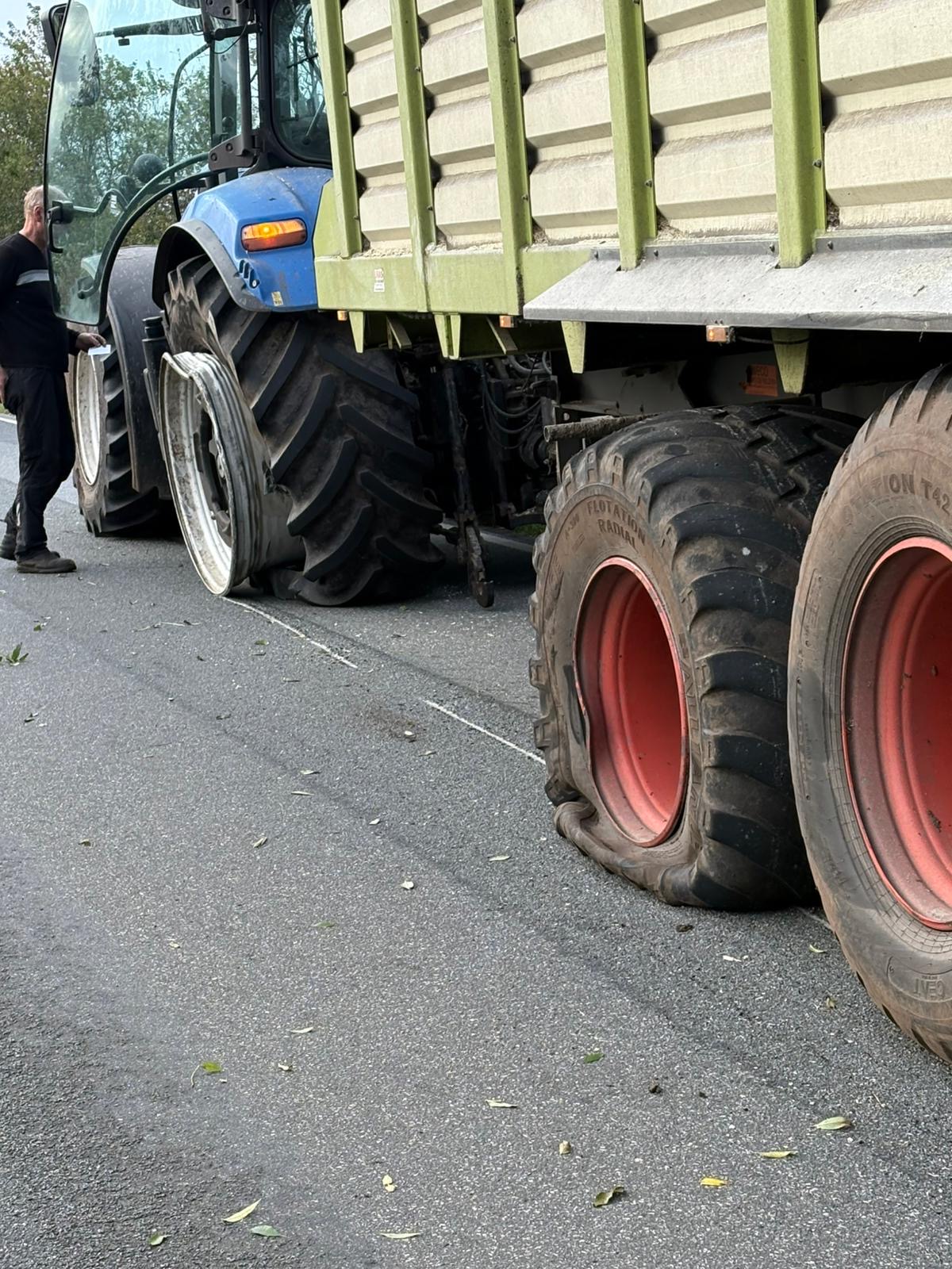 Bei dem zweiten Traktor war der linke Hinterreifen von der Felgen gedrückt worden und am Silowagen war eines der Räder defekt.
