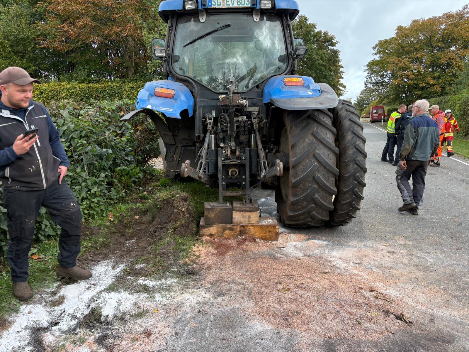 Die Feuerwehren aus Kleinwiehe und Meyn haben die Sicherung der Einsatzstelle und das Binden des ausgelaufene Hydrauliköl bis zur Bergung der beschädigten Traktoren unterstützt und dann die Einsatzstelle an die Polizei übergeben.